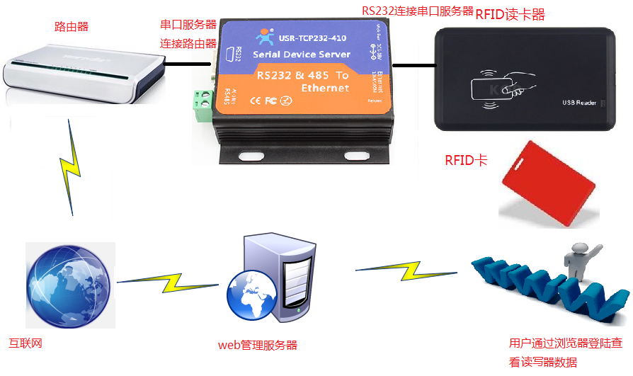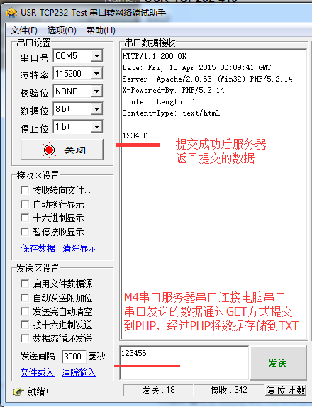 3:串口服務器串口連接電腦,串口發送數據123456,提交成功后將數據返回,然后服務器存儲提交的數據。然后連接讀卡器到串口服務器串口,然后讀卡器刷卡后,串口自動把卡號傳給串口服務器,串口服務器將數據傳到的網頁服務器PHP。