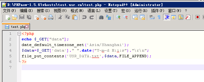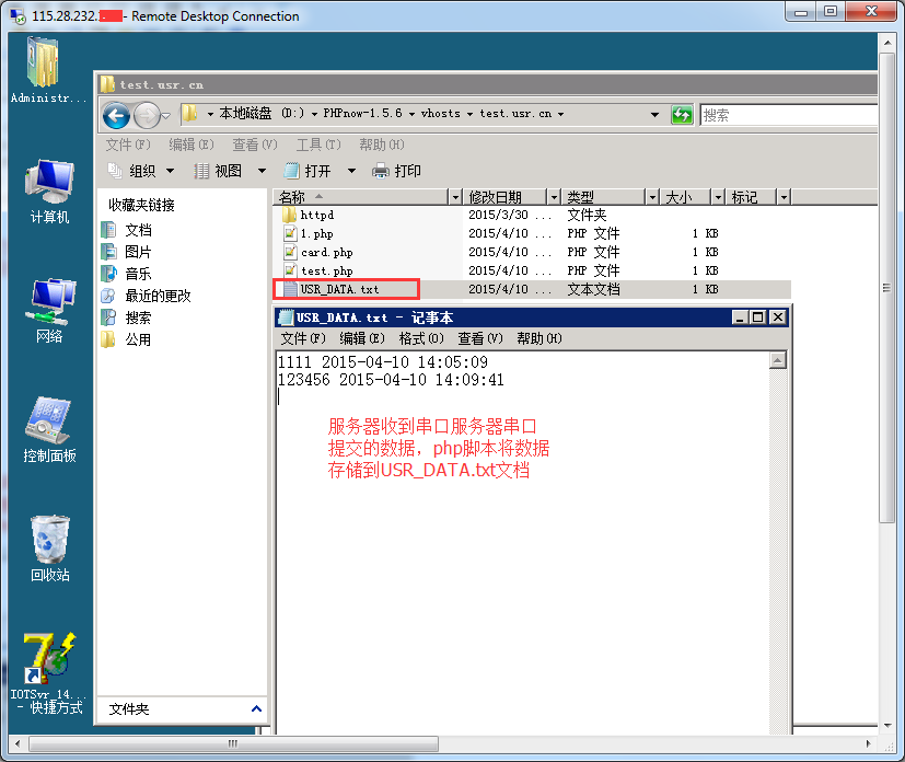 4:服務器代碼:1:將數據發送到串口服務器 2:將GET的數據后加上時間 3:將數據存儲到USR_DATA.txt文件里。