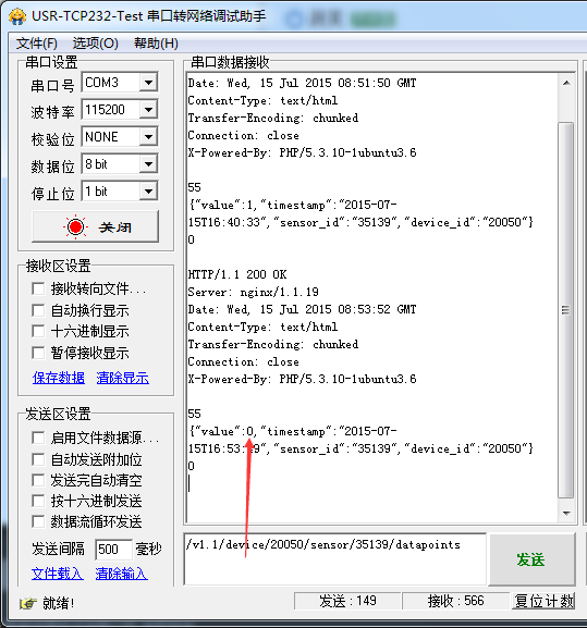 C32系列WiFi模塊以HTTP GET方式向yeelink物聯網平臺獲取數據