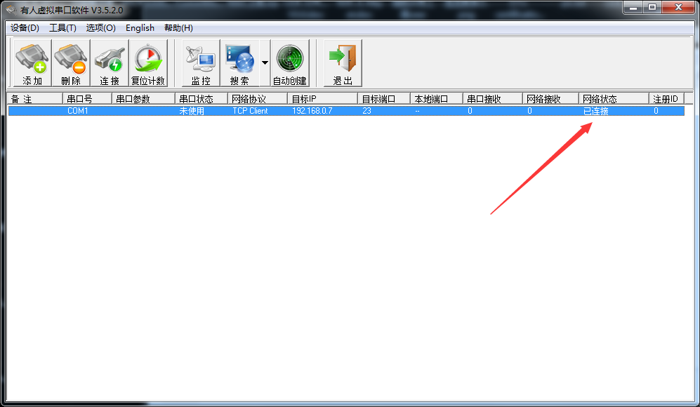 3:com1網絡狀態為已連接,說明網絡通信OK。