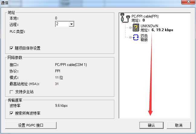 7:點擊通信,然后雙擊刷新,搜索到設備,然后點確定。