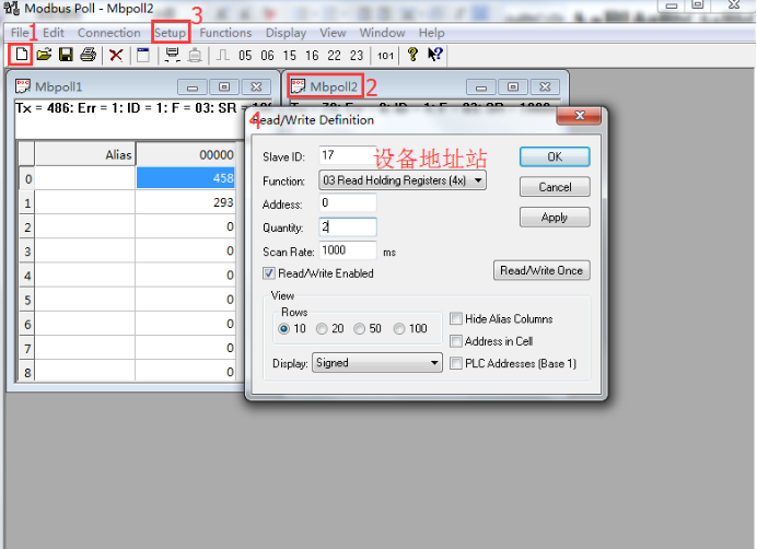 (2)Slave ID為要訪問的Modbus設備從站的地址。