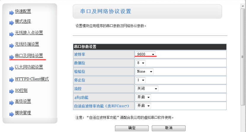 g)讀卡器波特率為9600,所以需要將604模塊波特率修改為和讀卡器匹配。連接上模塊的無線信號后,打開瀏覽器輸入10.10.100.254,賬戶密碼為admin,進(jìn)入到模塊內(nèi)置網(wǎng)頁后,在串口及網(wǎng)絡(luò)設(shè)置里將模塊波特率修改為9600,參數(shù)設(shè)置完畢后點(diǎn)確定并重啟模塊。電腦重新連接到模塊信號。