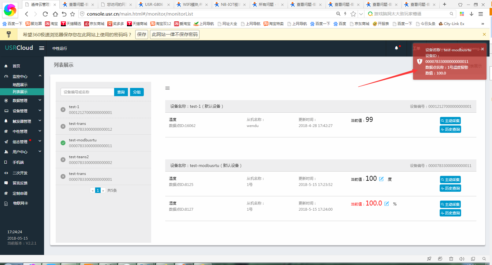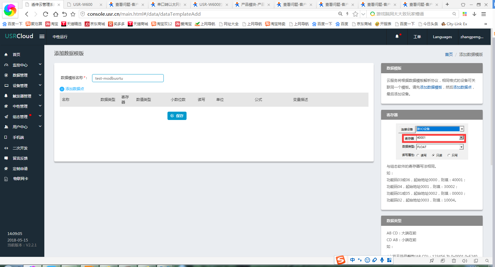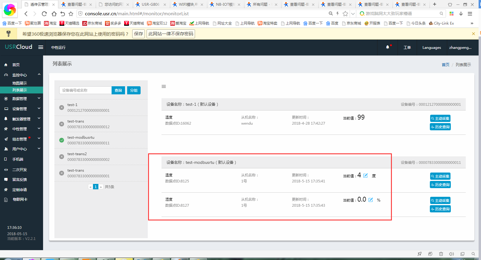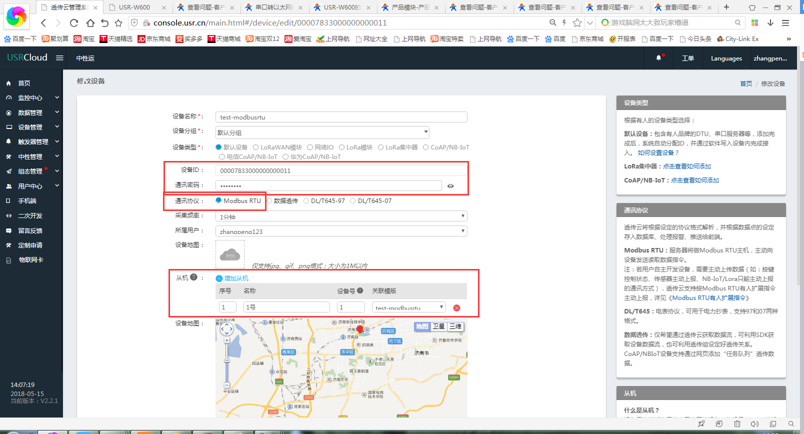 客戶實際應用:modbus rtu設備---410s--路由器--透傳云(組態顯示)