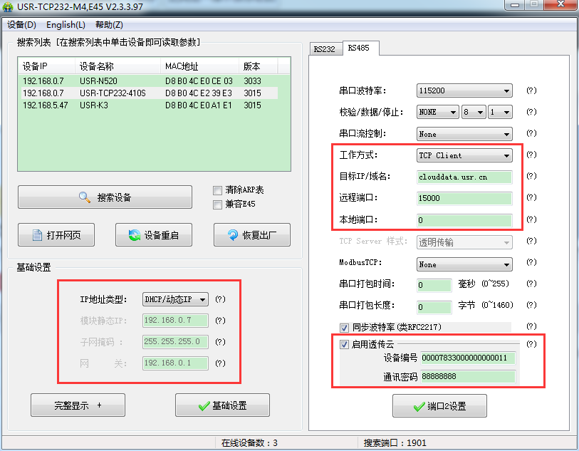 設備編號客戶根據自己的需求添加編號設置。這里是11.密碼是88888888