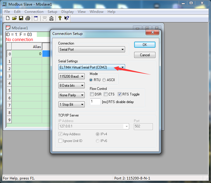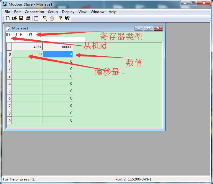 說明:用modbus slave軟件模擬modbus rtu協議的串口設備;