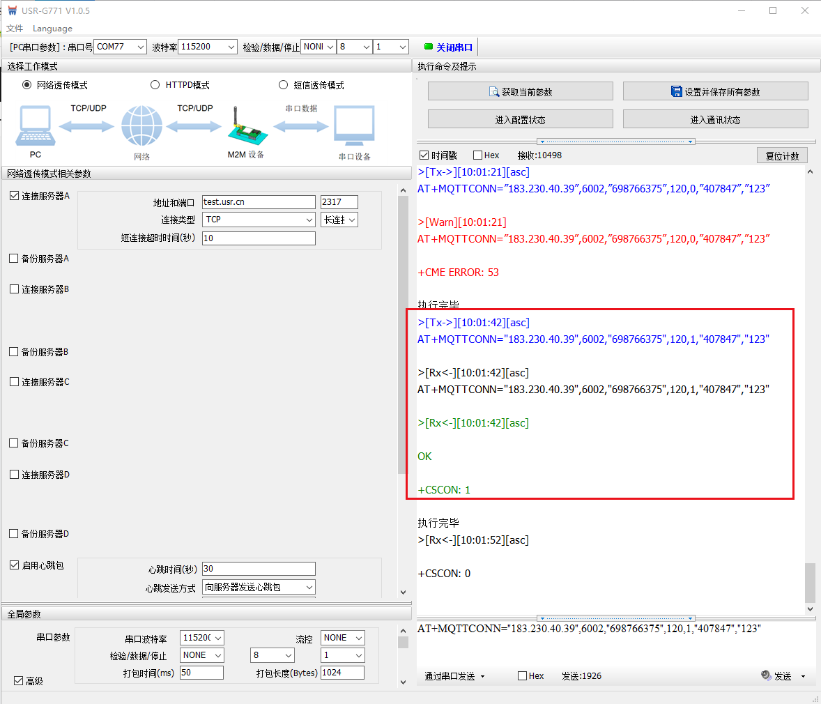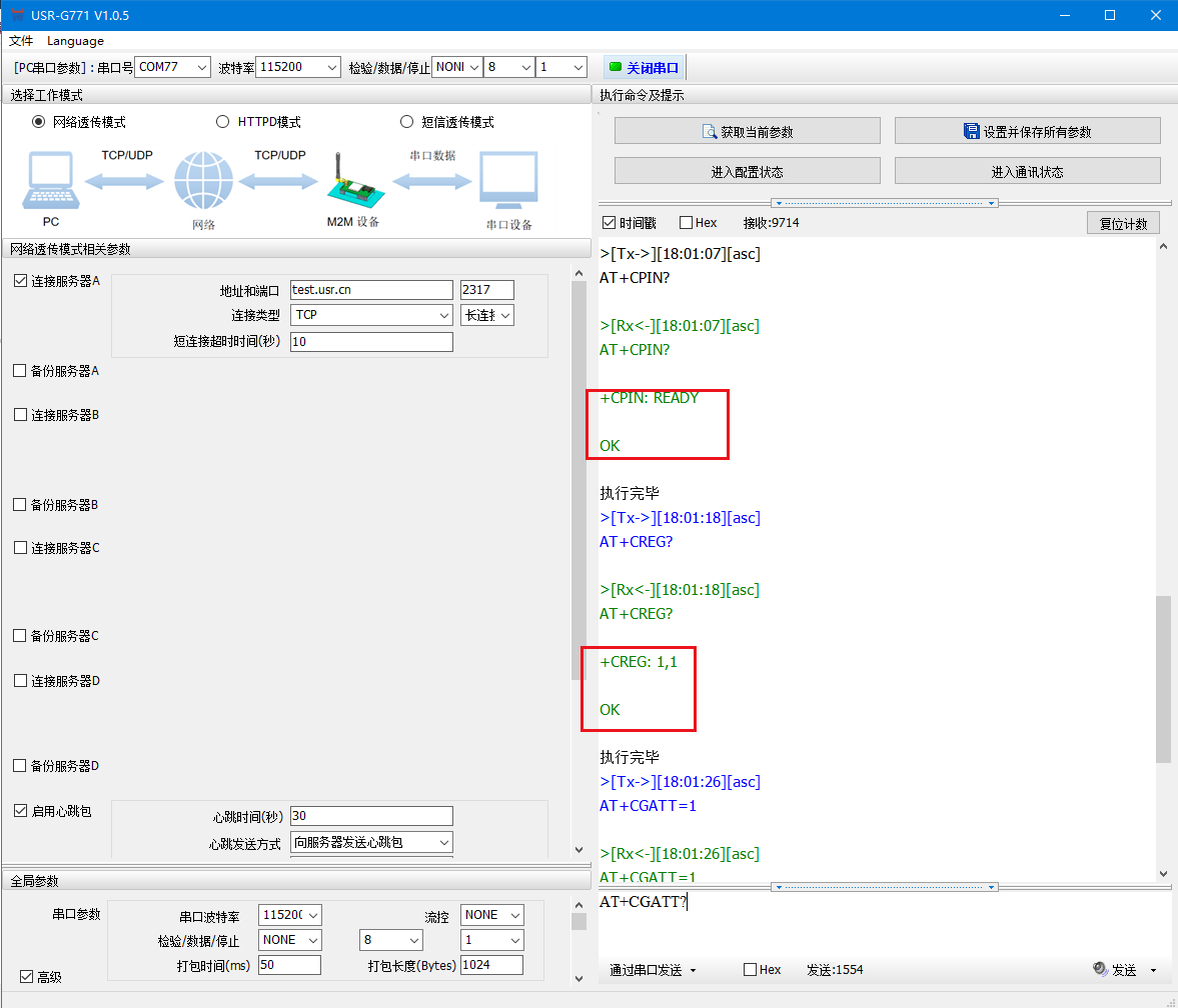 注意:G771工作在CMD模式下,不自動(dòng)駐網(wǎng),需要手動(dòng)駐網(wǎng),參考下面流程