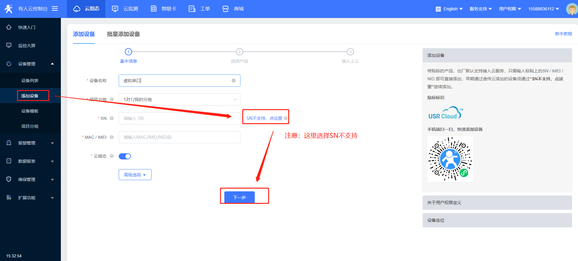 注意:這個設備不支持SN添加