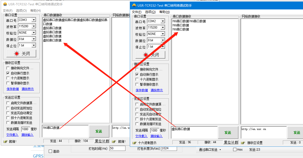打開兩個串口調試軟件