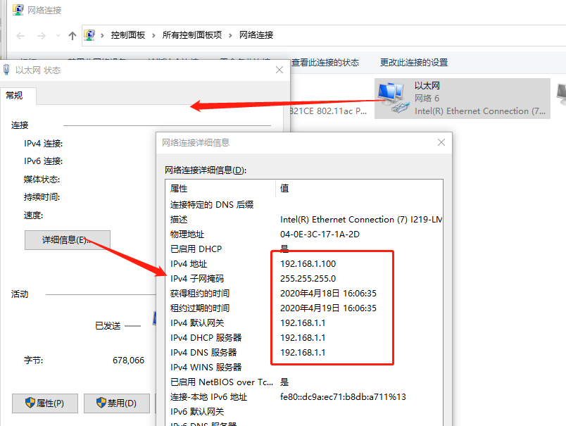 雙擊該網(wǎng)卡,顯示詳細(xì)信息,查看電腦獲取的IP