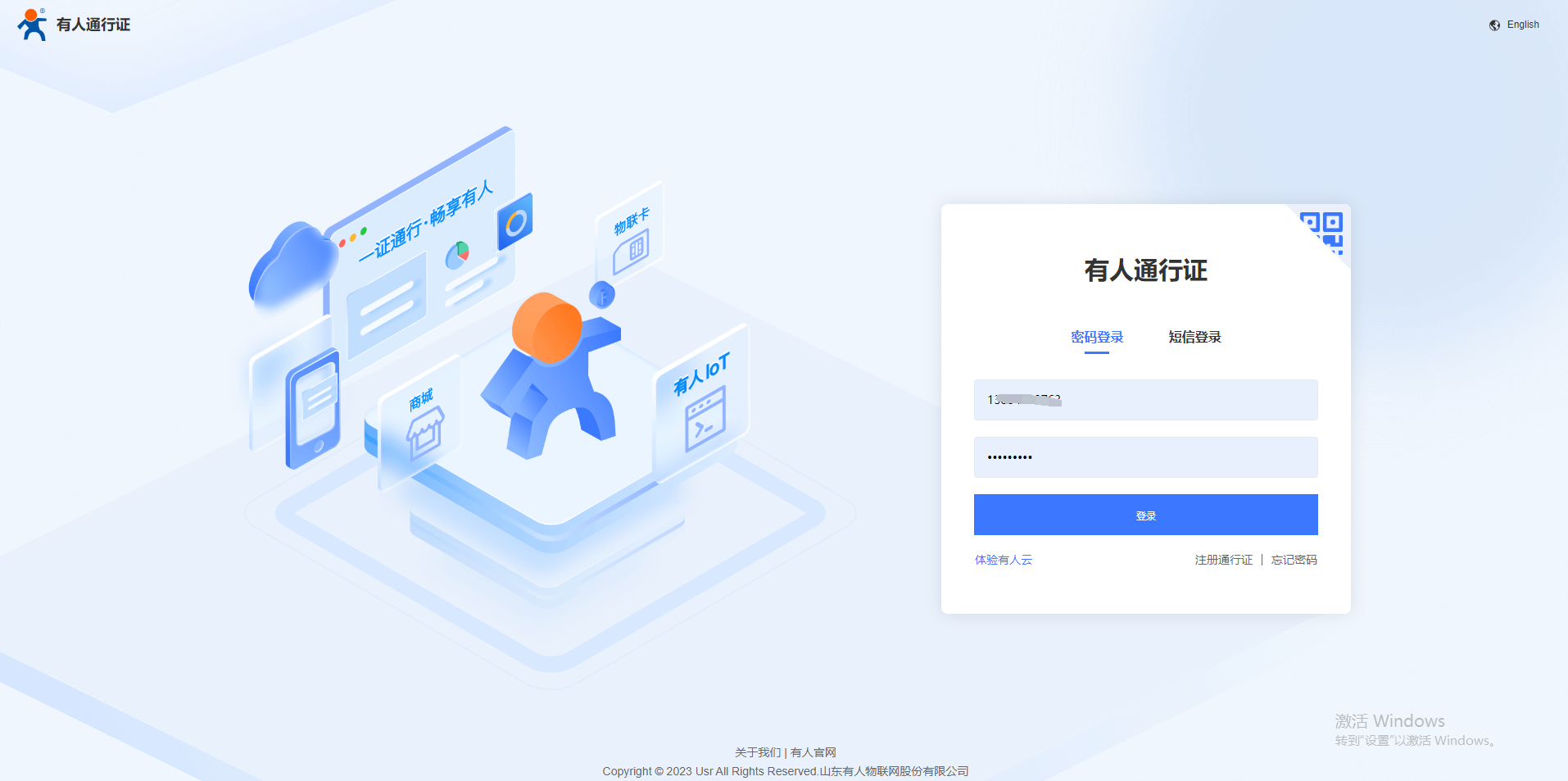 1、登錄有人云平臺(tái):https://account.usr.cn/#/login_cps(如果沒(méi)有賬號(hào)先申請(qǐng)通行證)