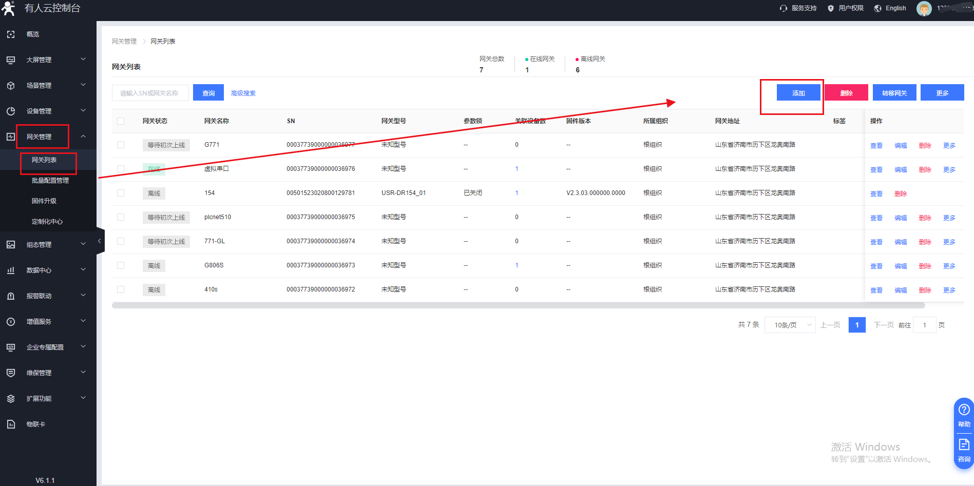 (1)云平臺(tái)添加網(wǎng)關(guān),在網(wǎng)關(guān)管理---網(wǎng)關(guān)列表--添加,點(diǎn)擊SN不支持,系統(tǒng)自動(dòng)生成,不需要客戶(hù)自己設(shè)置,通訊密碼可以自定義8位密碼.(建議使用系統(tǒng)自動(dòng)生成的通訊密碼),開(kāi)啟有人云透?jìng)?br />