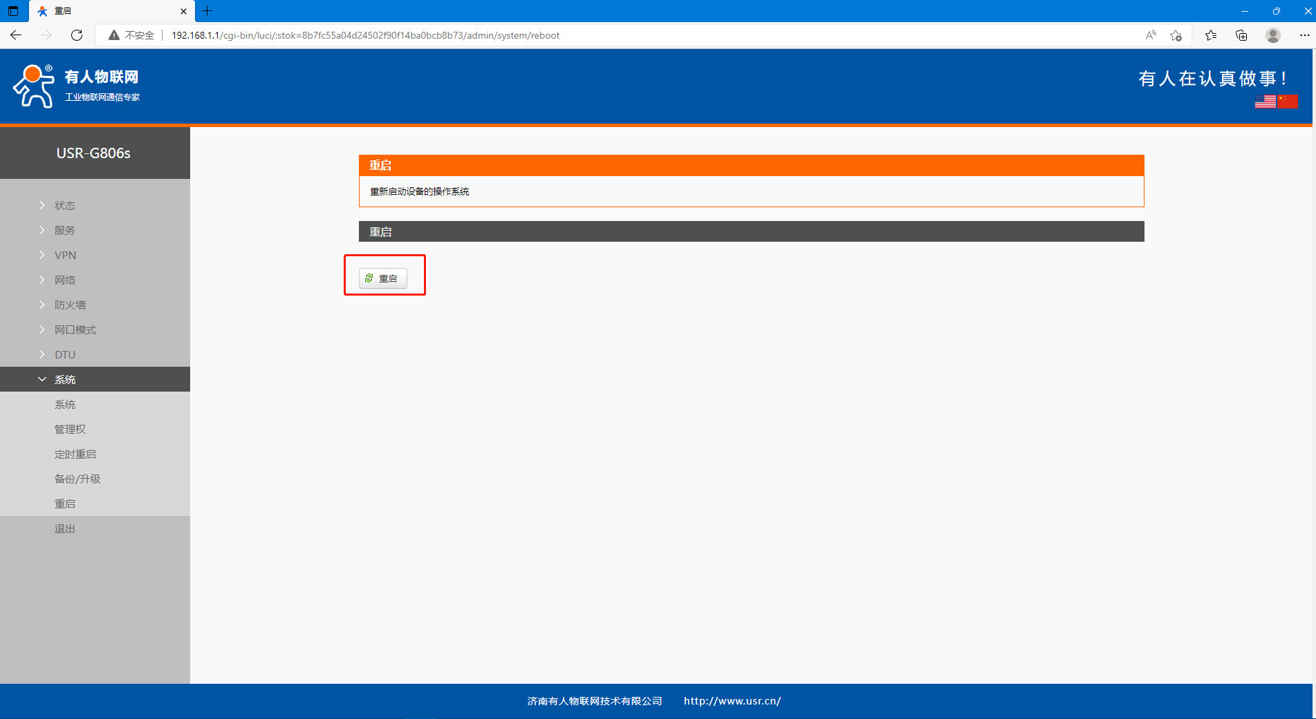 4.修改完成后點擊應用,在系統--重啟頁面重啟設備。