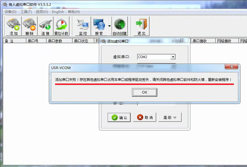 1:虛擬串口軟件,添加虛擬串口失敗問題。