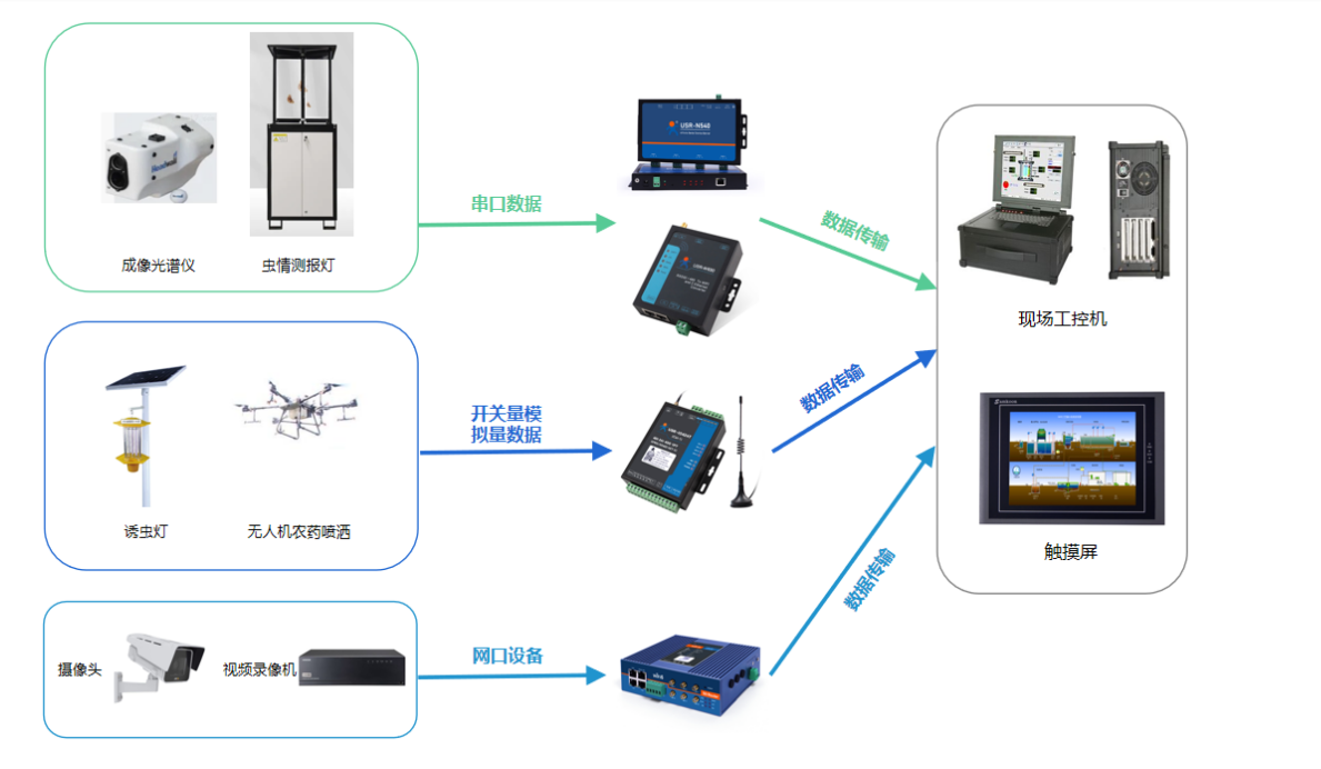 開關(guān)量接口,如誘蟲燈開關(guān)、加熱管開關(guān)、無人機(jī)農(nóng)藥噴灑開關(guān)等;