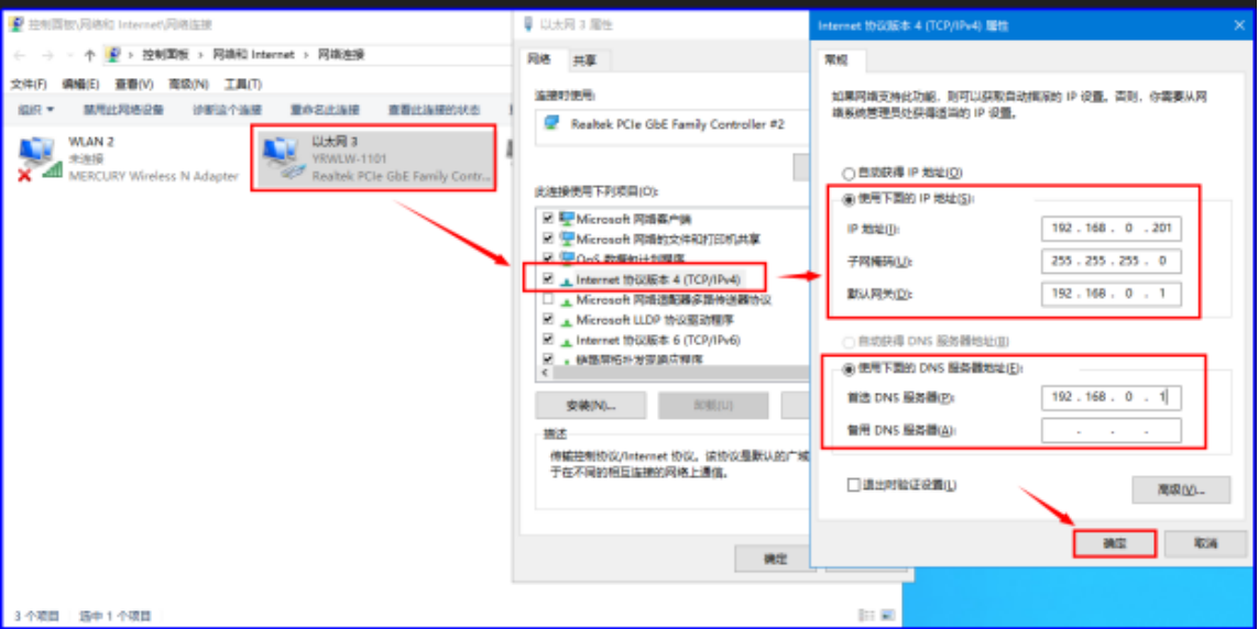 3、電腦:控制面板\網絡和 Internet\網絡連接,IP設置和M100 IP同網段,M100默認IP是192.168.0.7,網關192.168.0.1,將電腦本地連接IPv4設置靜態IP,192.168.0.201,子網掩碼255.255.255.0,網關192.168.0.1。