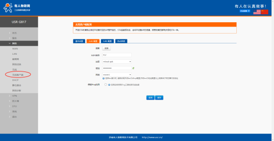 2、打開網絡--無線,817的AP配置如圖,可按照需求修改相關內容。修改完后點應用生效。