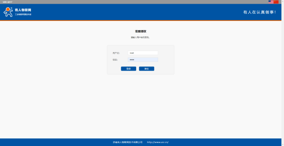 1、USR-G817默認啟用AP功能,設備插上wifi天線,接入電源適配器,電腦連接817wifi,輸入192.168.1.1打開內置網頁,用戶名密碼都為root,點擊登錄。