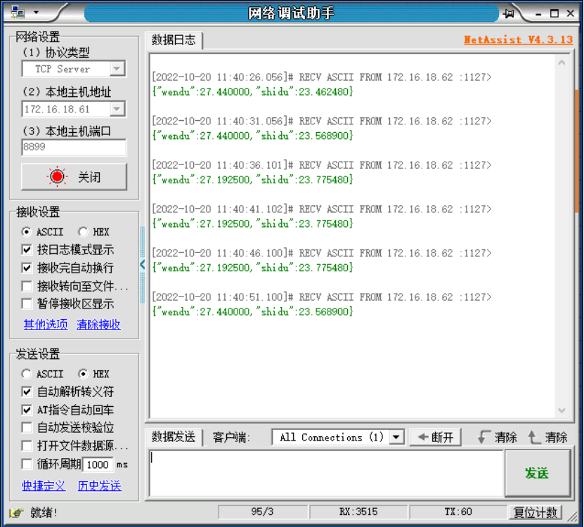 服務(wù)器可以接收到設(shè)備上報(bào)的json數(shù)據(jù)。