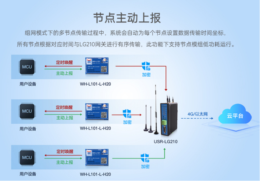 注意:網關處于主動上報模式下時,會根據用戶設置的參數(上報周期/節點總數=上報間隔)計算出每個節點需要進行上報的時間, 默認上報周期為60s,上報周期是單個節點上報數據的間隔, 也就是說低功耗下模塊會間隔60s喚醒一次。