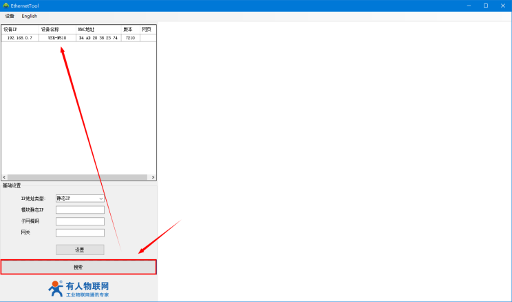 用H7系列配置軟件搜索N580設備,單擊搜索,搜搜到設備后雙擊設備。