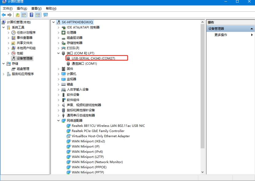 9. 電腦識別到M100的串口,用test軟件打開,串口端實現自發自收。