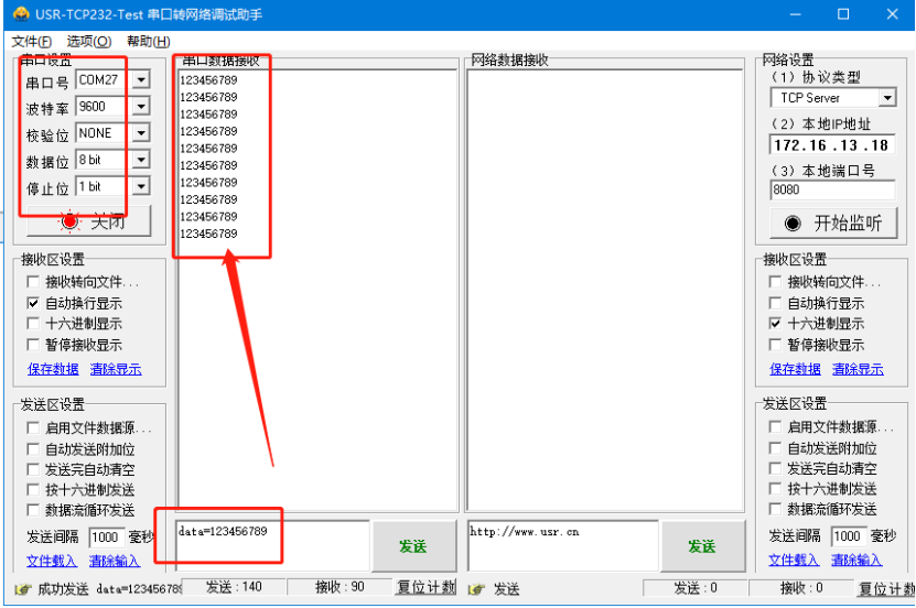 USR-M100連接串口設備通過get連接HTTP服務器