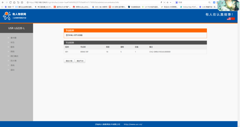 2、登陸LG220網頁,可以看到節點在線信息。