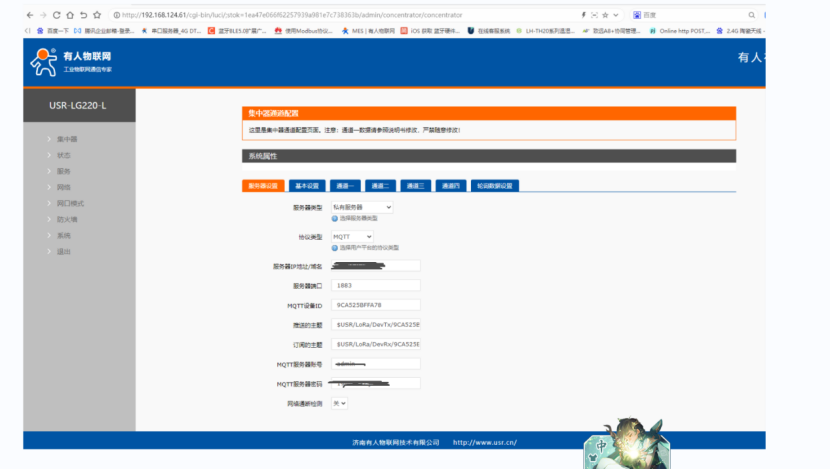 配置LG220的集中器MQTT相關參數。