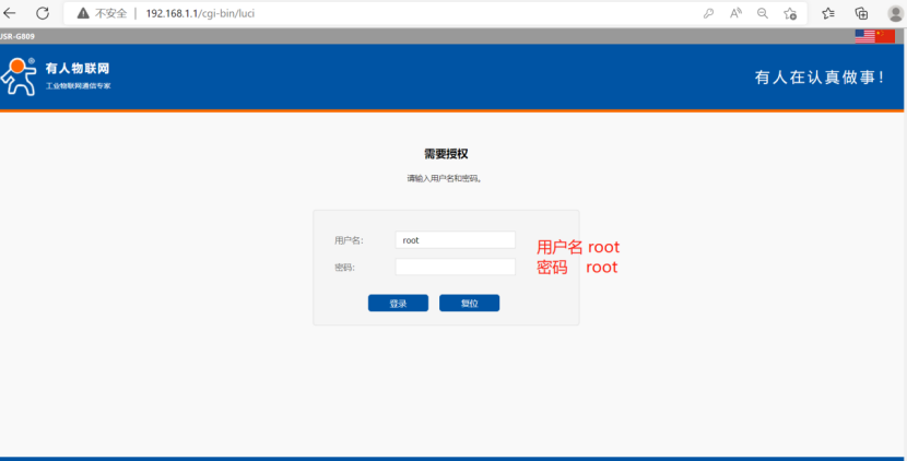 2、在瀏覽器上輸入192.168.1.1,用戶名和密碼都是root,登錄G809的內(nèi)置網(wǎng)頁。