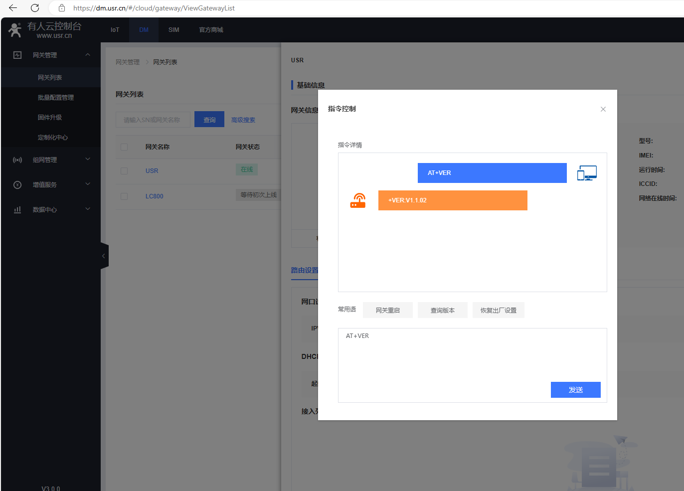 也可以在指令控制彈框,發(fā)送AT+VER,去查詢固件版本號。