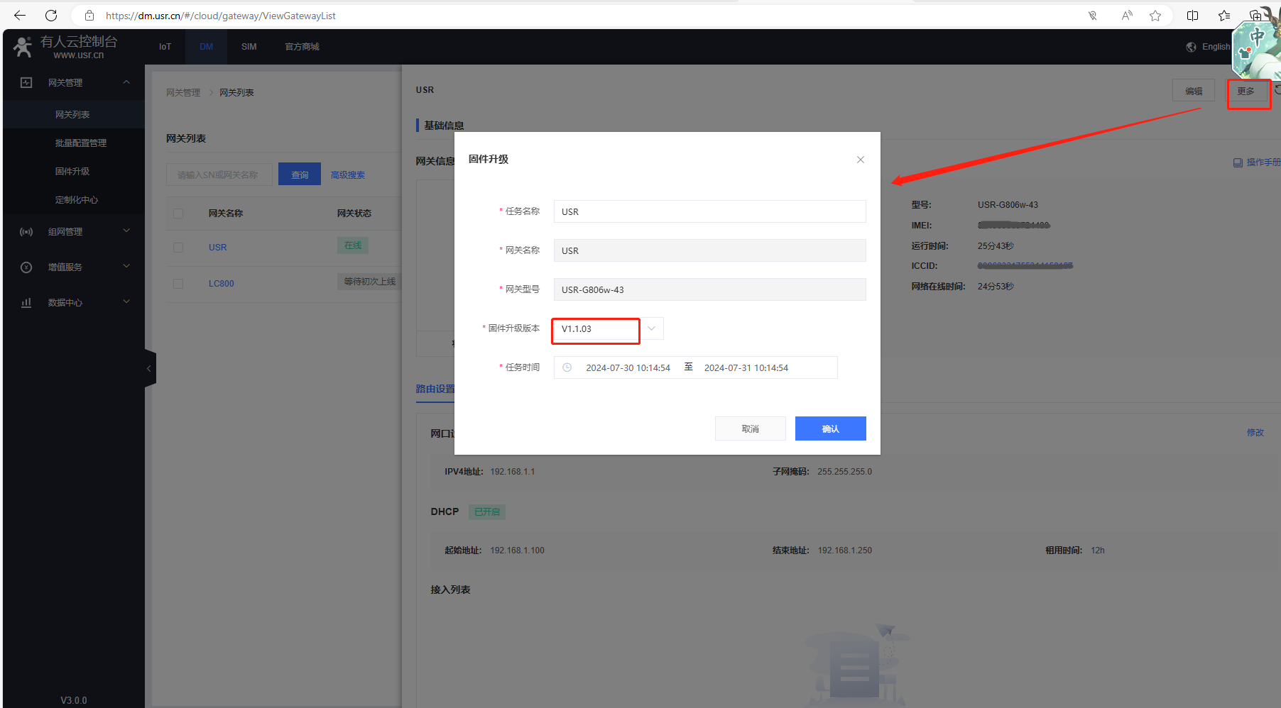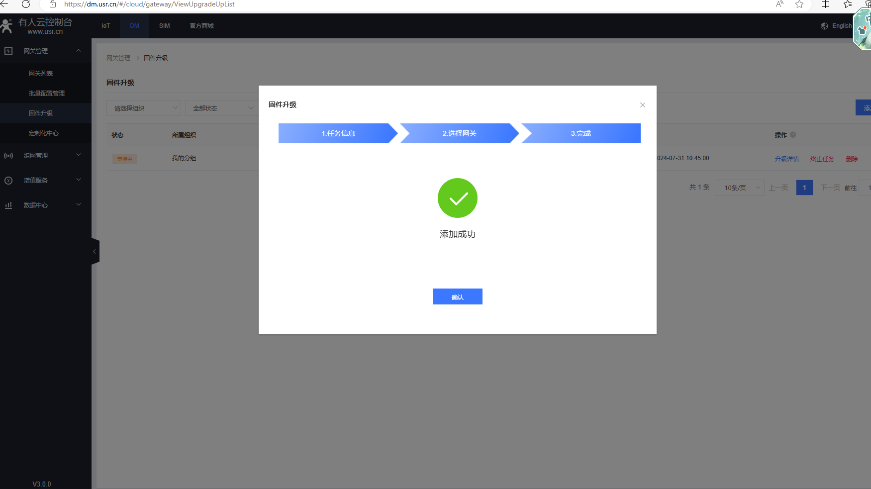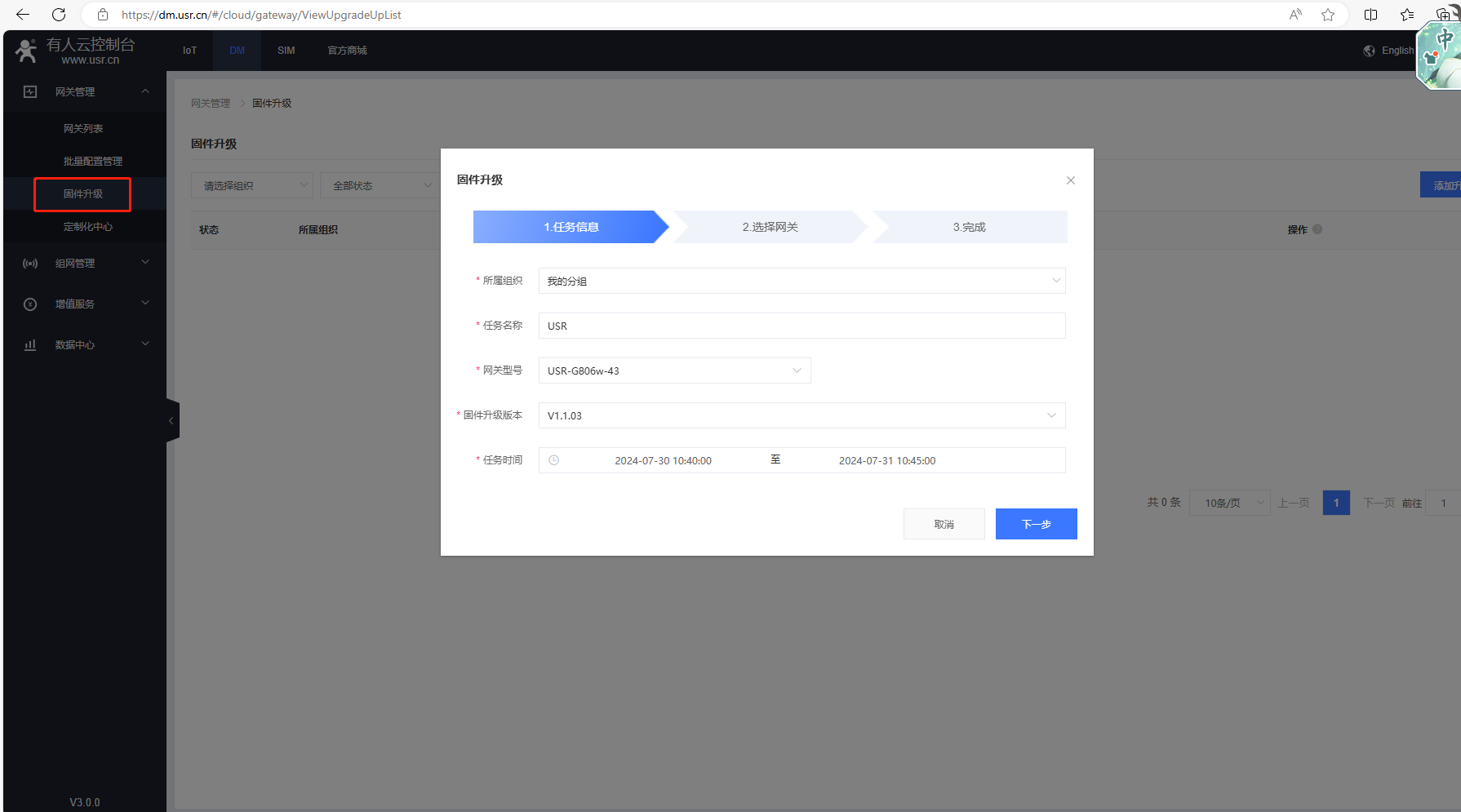 9、DM平臺,點擊網(wǎng)關列表,點擊固件升級步驟頁面