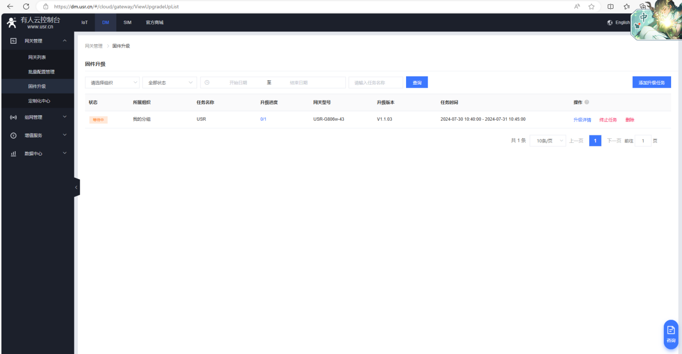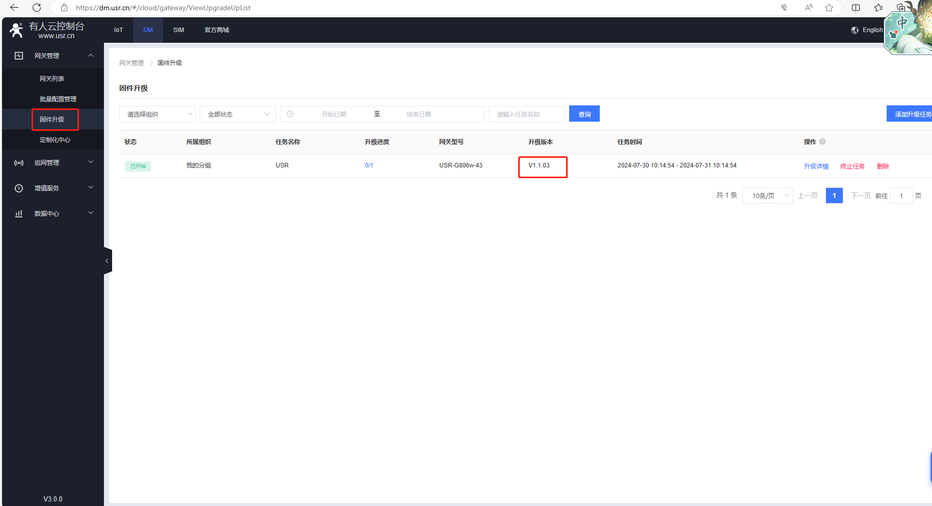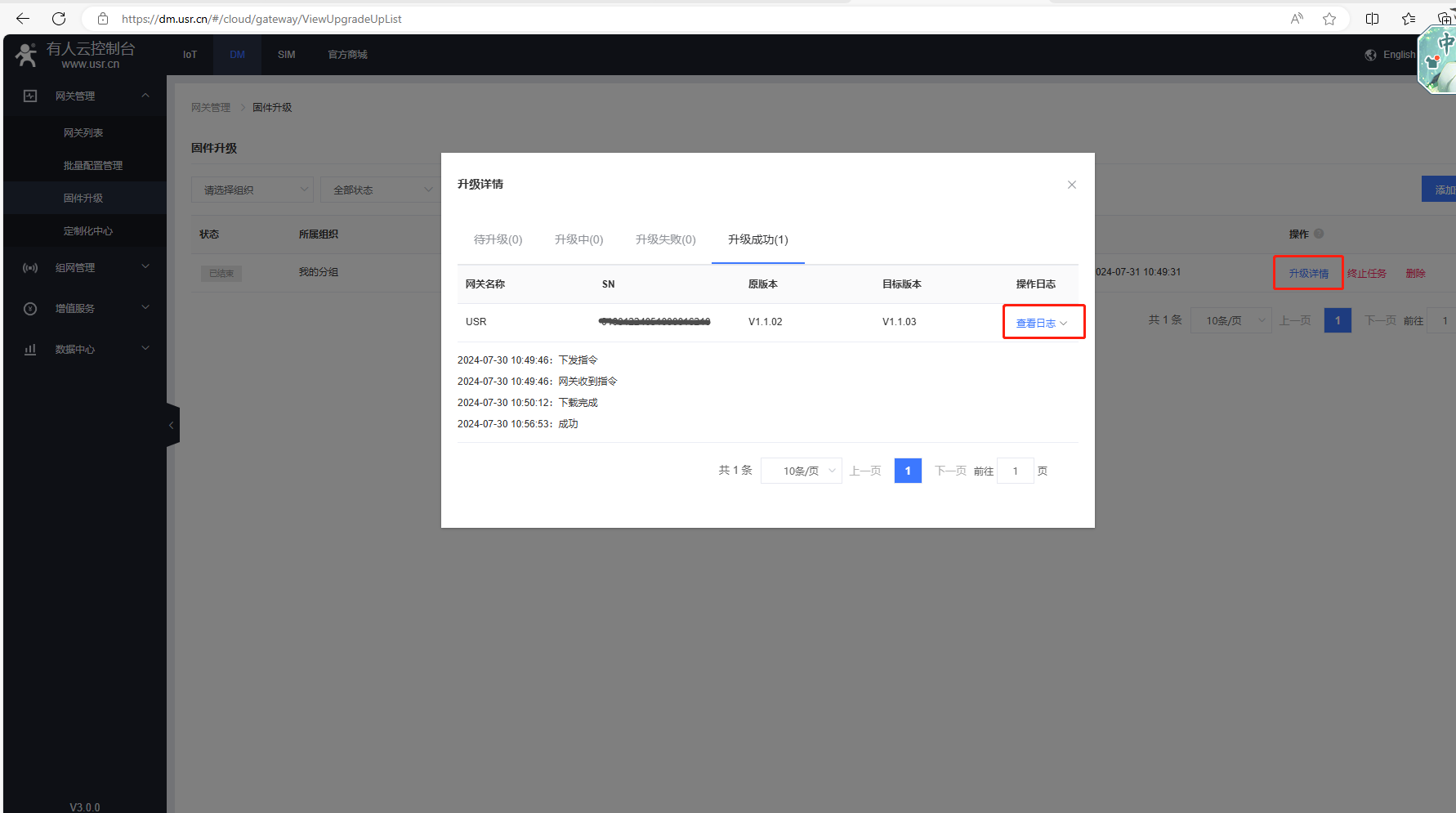 9、DM平臺,點擊網(wǎng)關列表,點擊固件升級步驟頁面