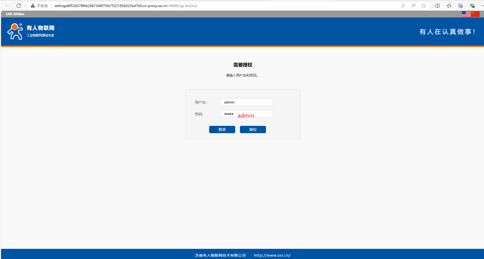 (3)USR-G806w登陸網(wǎng)頁的用戶名和密碼是admin。
