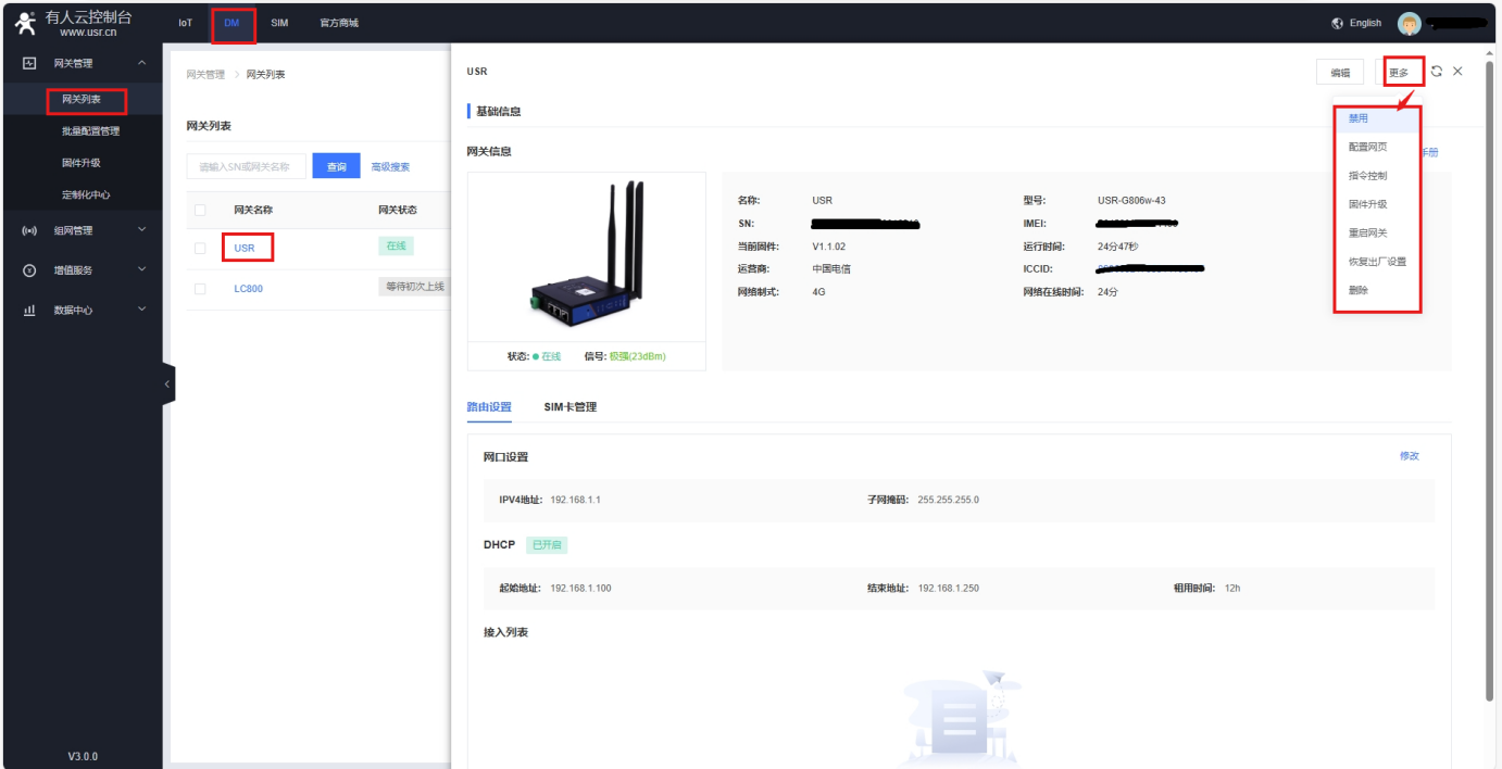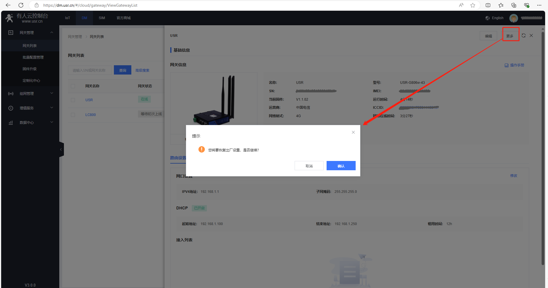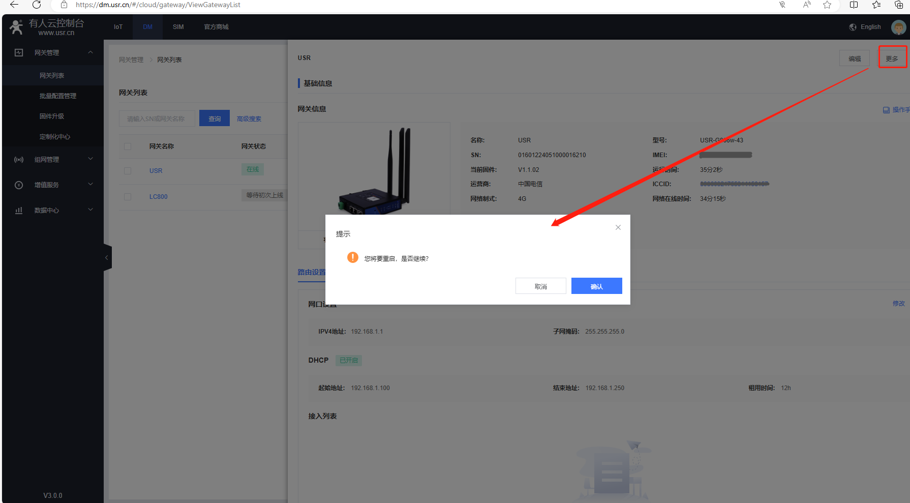 6、DM平臺,點擊更多,重啟網(wǎng)關