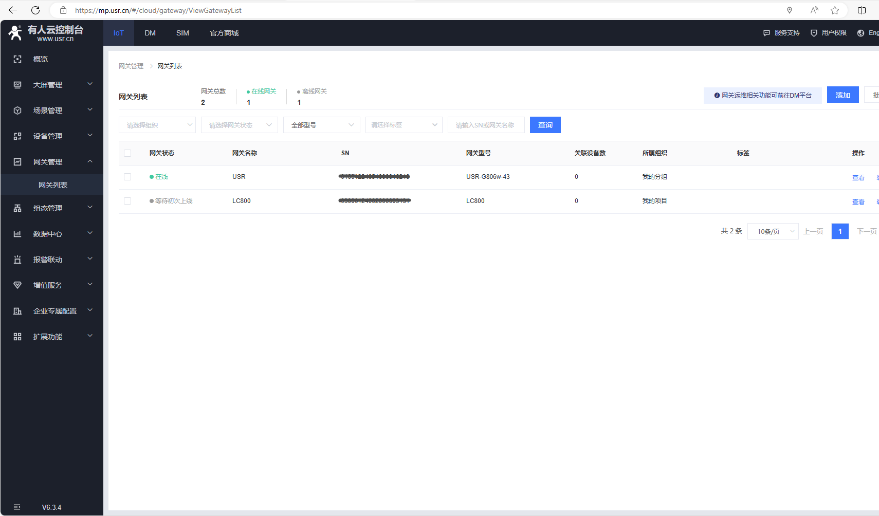 (1)IOT平臺,點擊網(wǎng)關管理,點擊網(wǎng)關列表,點擊添加。
