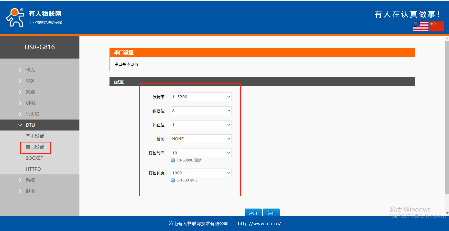 3、串口設置:波特率、數據位、校驗位、停止位和串口終端設備保持一致,本案例以默認為主。