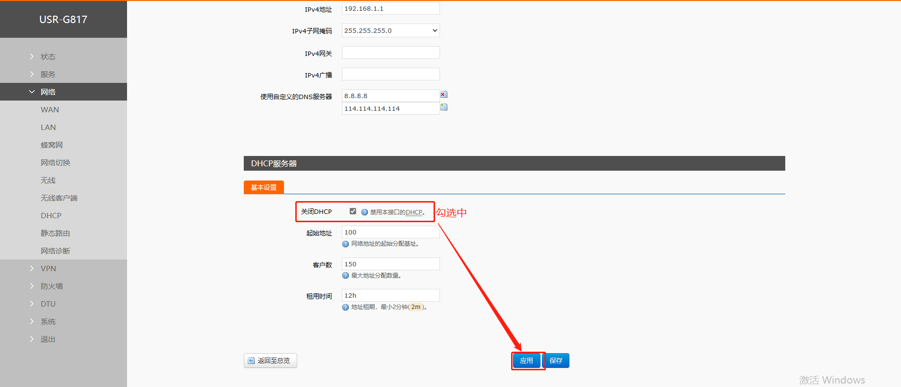 4>關(guān)閉DHCP
