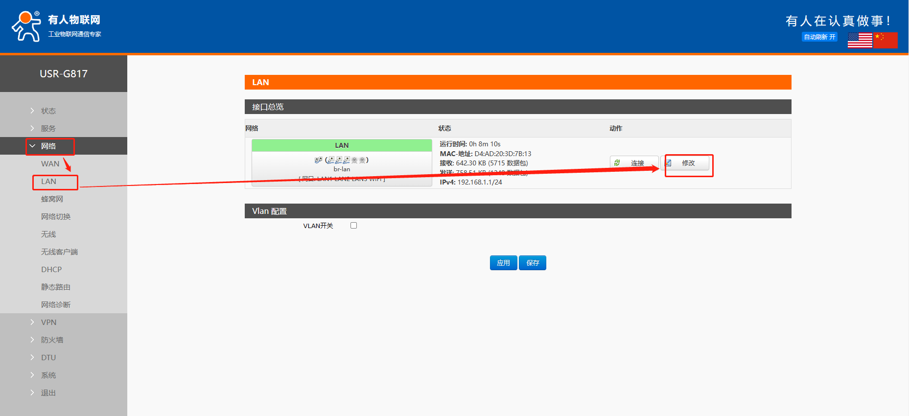 USR-G817用作交換機設(shè)置方法