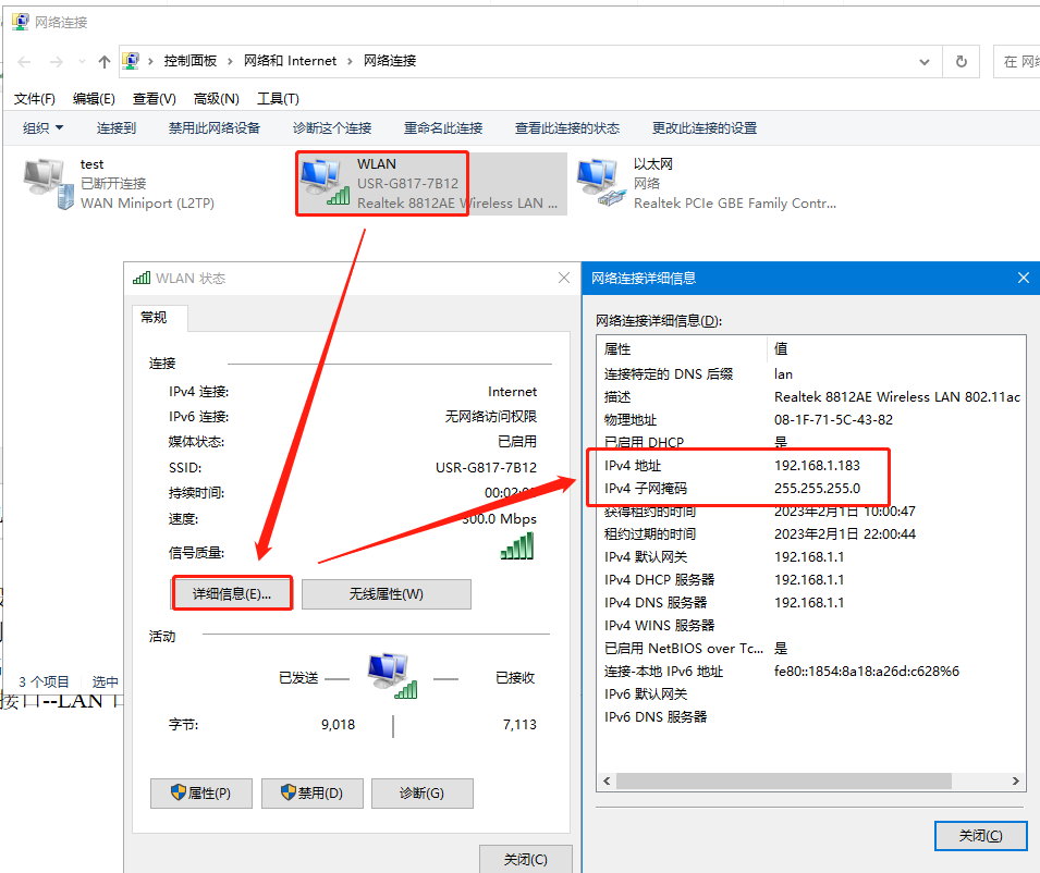 3>查看電腦獲取到的IP地址192.168.1.183;如果電腦無法獲取到IP地址的話,需要檢查上面的硬件鏈接是否正常