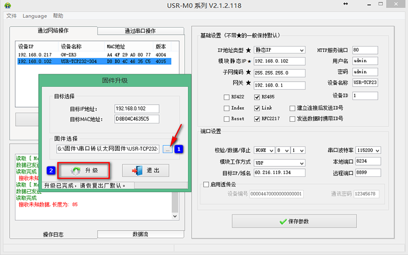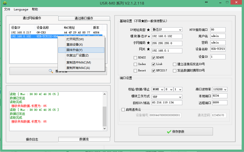 2、右擊搜索到的M0產(chǎn)品,選擇“固件升級”。
