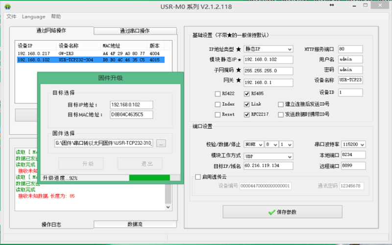 1、將M0系列的產(chǎn)品,加入路由器中,升級使用的電腦也加入同一個(gè)路由,使用配置軟件搜索M0。