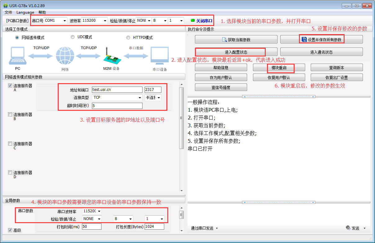 正常情況下,到這里,模塊就已經(jīng)連上您設(shè)置好的服務(wù)器了。