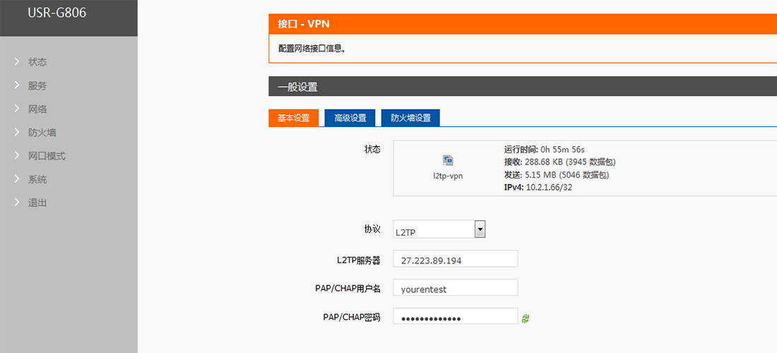 基于華為路由器搭建的VPN服務器,使用USR-G806撥VPN服務器,通過路由器下端的PC訪問G806LAN口設備。