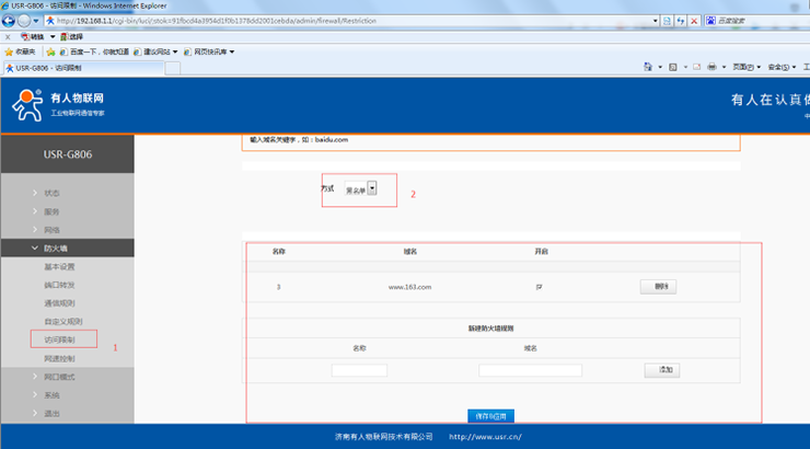 在使用路由器的應用中,客戶會屏蔽對一些網站的訪問,這個就需要我們設置黑名單來屏蔽這些網站。