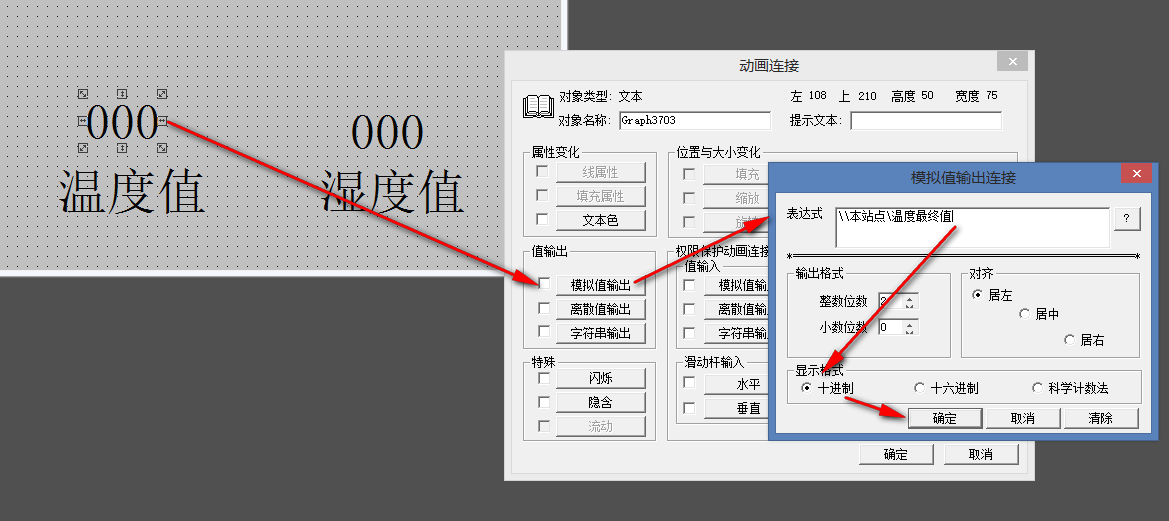 4.9新建需要的字體,然后將文本與數據值進行連接,然后點擊“文件”,選擇“全部保存”,然后將畫面切換到 View,點擊“畫面”,選擇畫面名“監控溫濕度”,然后讀取到溫度和濕度值在頁面上。