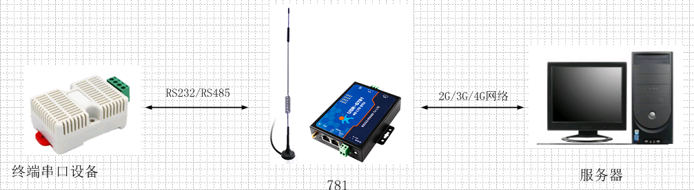 網絡拓撲結構: 終端串口設備發送數據--->781--->服務器