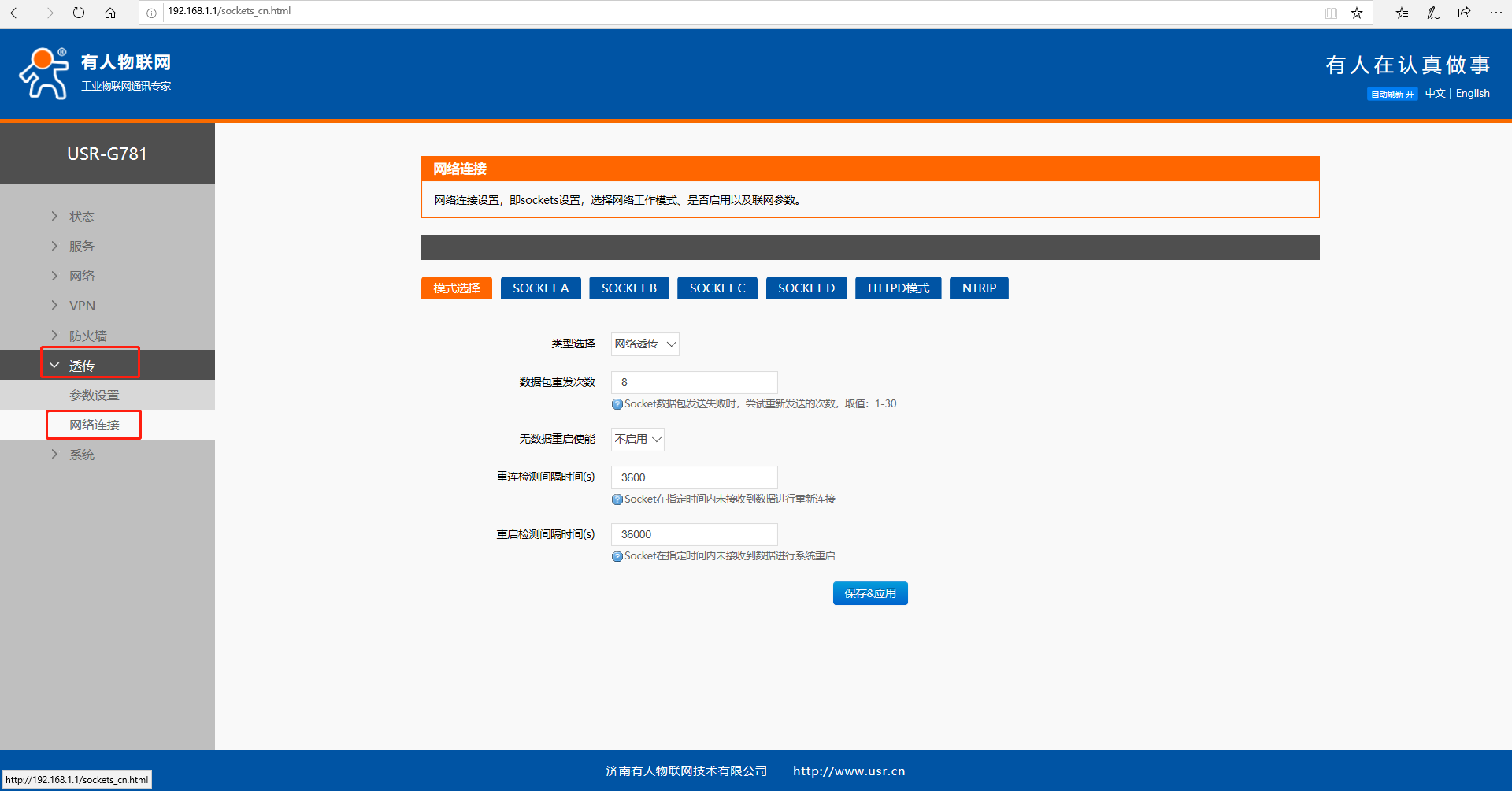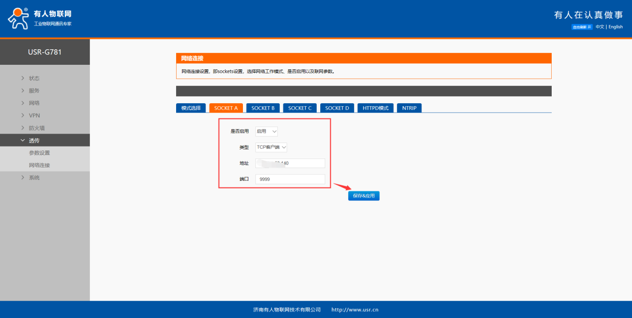 選擇SOCKETA,啟用,設置地址和端口,保存并應用