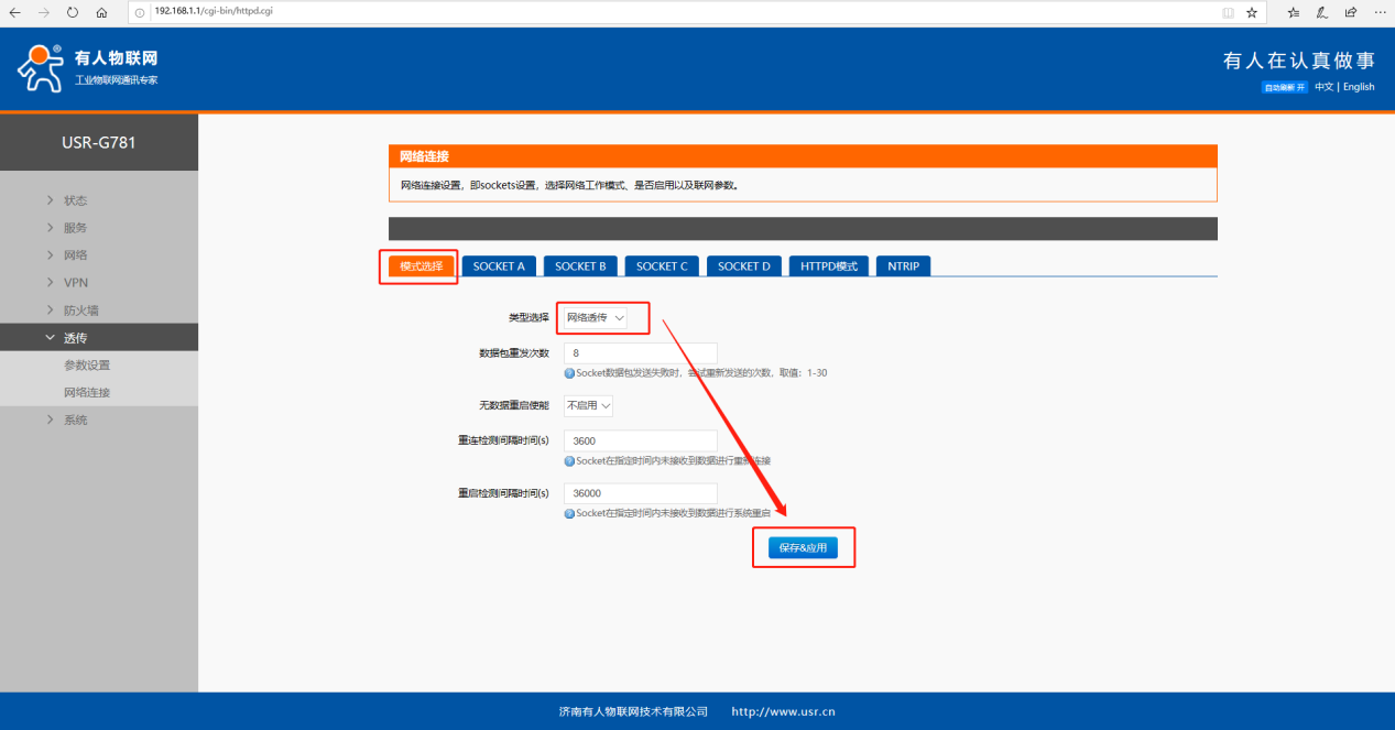注意:服務器必須有公網IP地址或者是域名,不能是局域網的IP地址,否則G781是無法在互聯網中找到服務器的