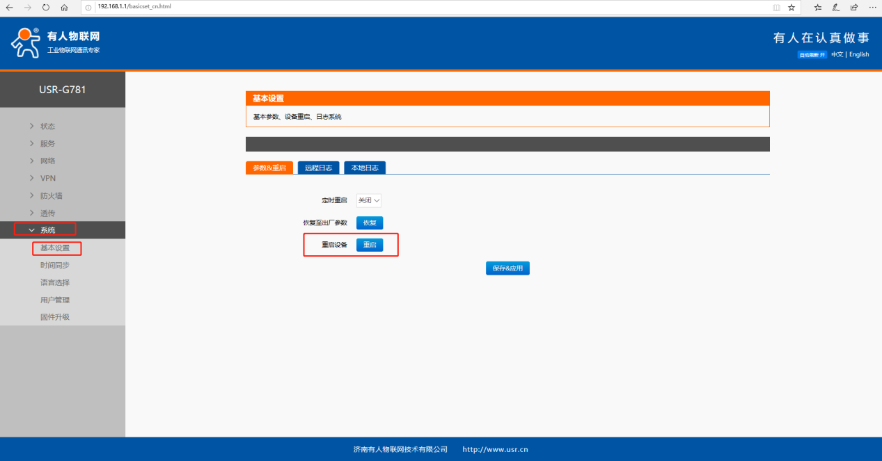 在內置網頁--透傳--參數設置中查看,波特率等串口參數出廠默認是:115200,8,1,n